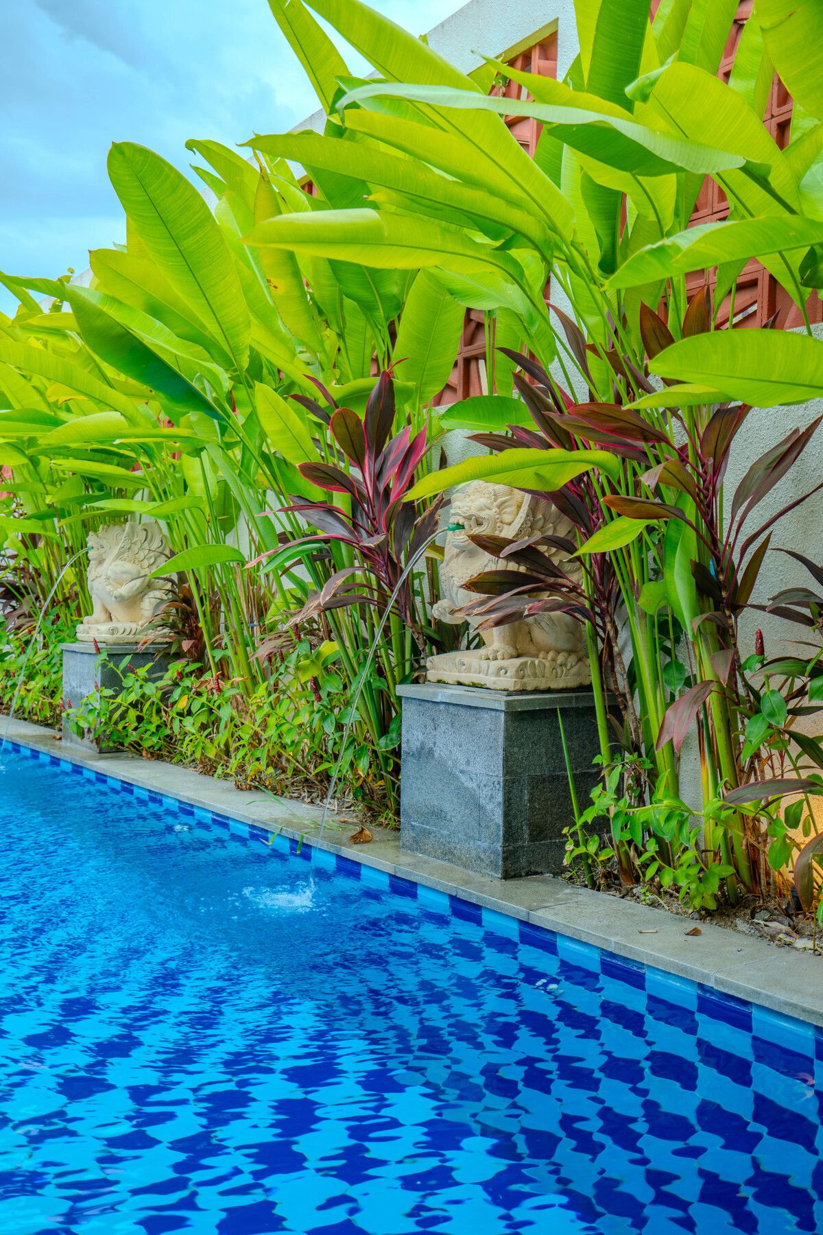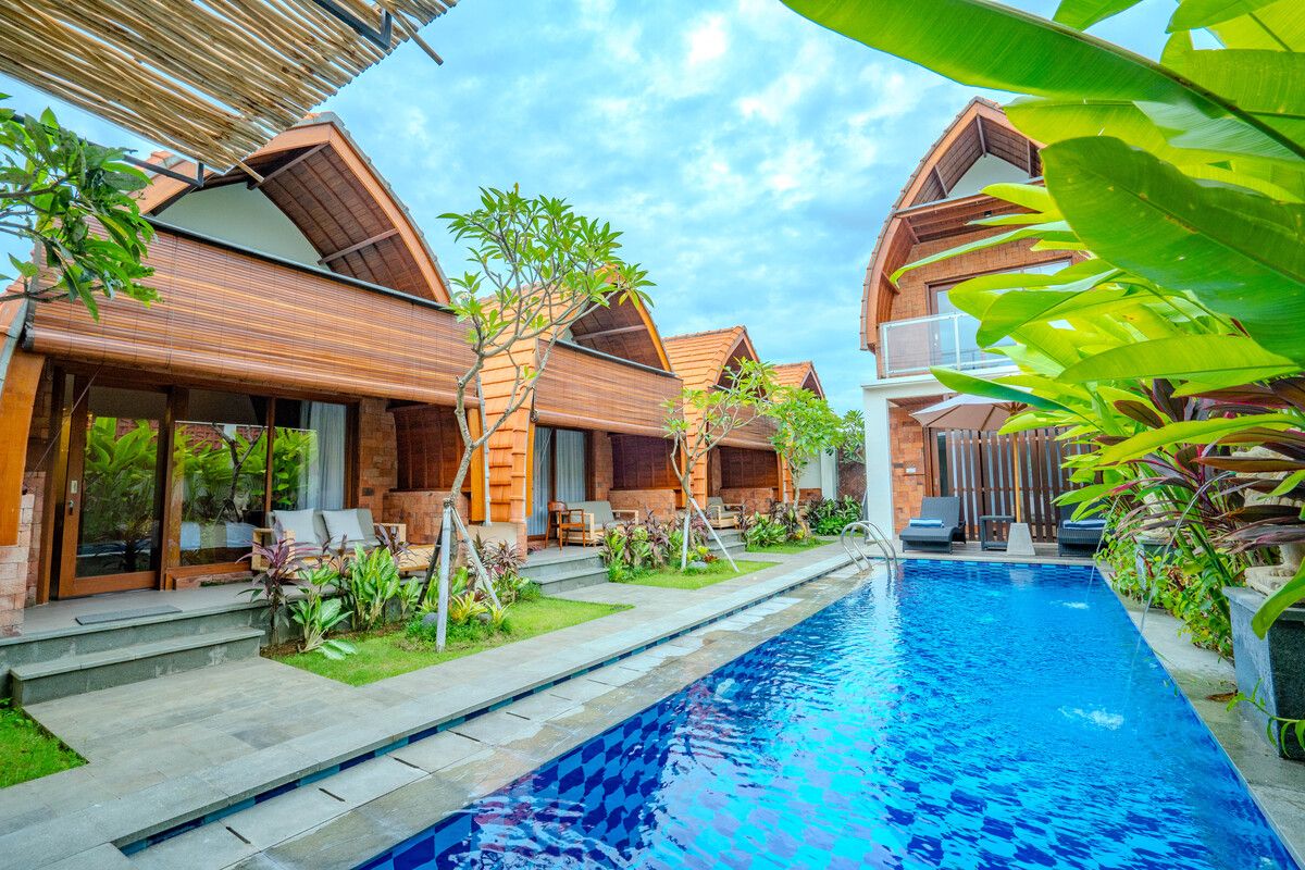 Guests share a beautifully maintained swimming pool and garden, creating a cozy community atmosphere without sacrificing privacy.